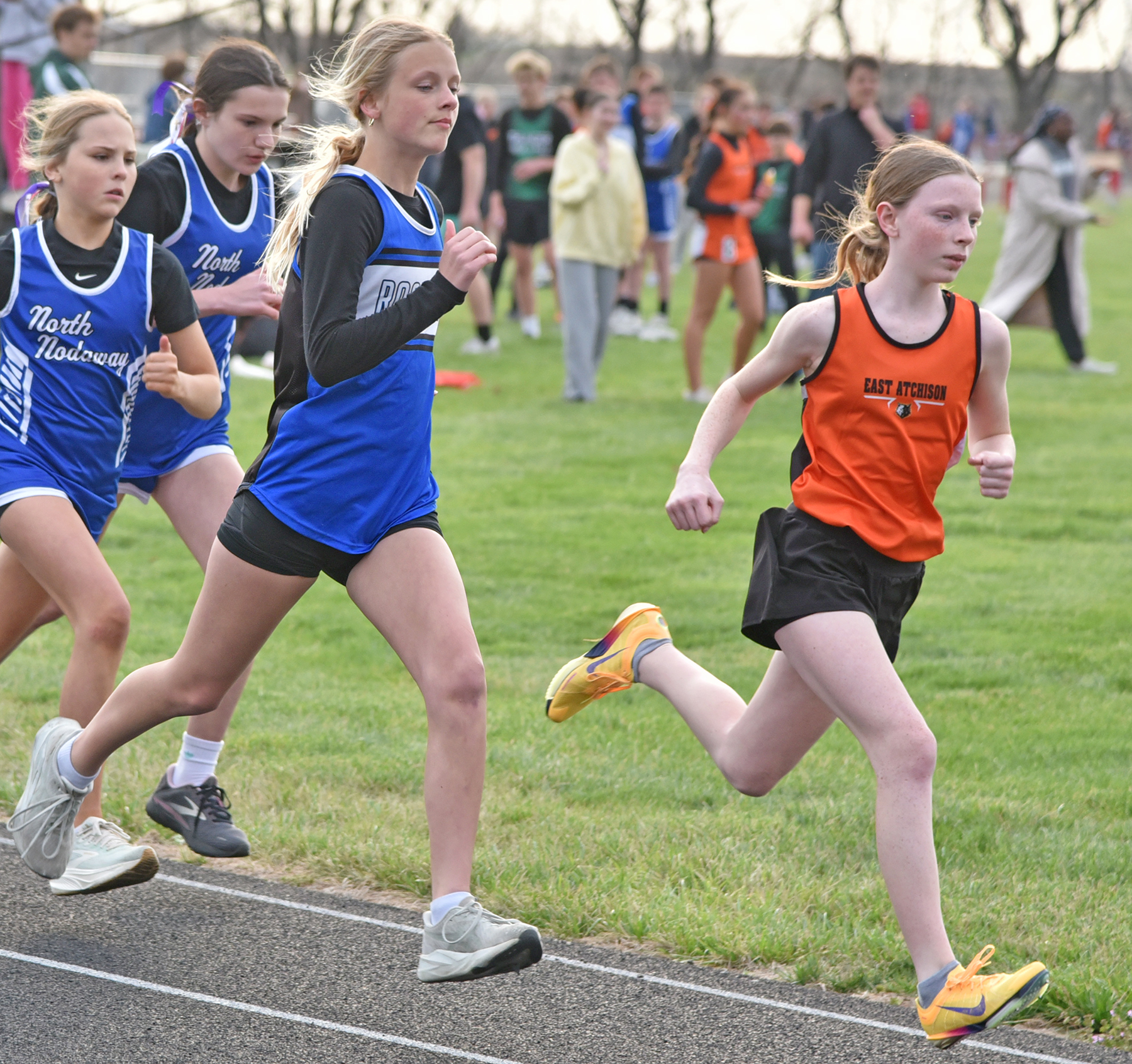 4×400 Meter Relay – 1st, East Atchison A (Mackenzie Oswald, Linley Hogue, Delaney Oswald, Mikayla Windham), 4:53.66; 3rd, Rock Port A (Jovie Millsap, Harper Wood, Kinsley Nuckolls, Harper Roup), 5:13.27; 4th, East Atchison B (Charlotte Wright, Brinkley Wright, Ryann Salmond, Hannah Wennihan), 5:26.07