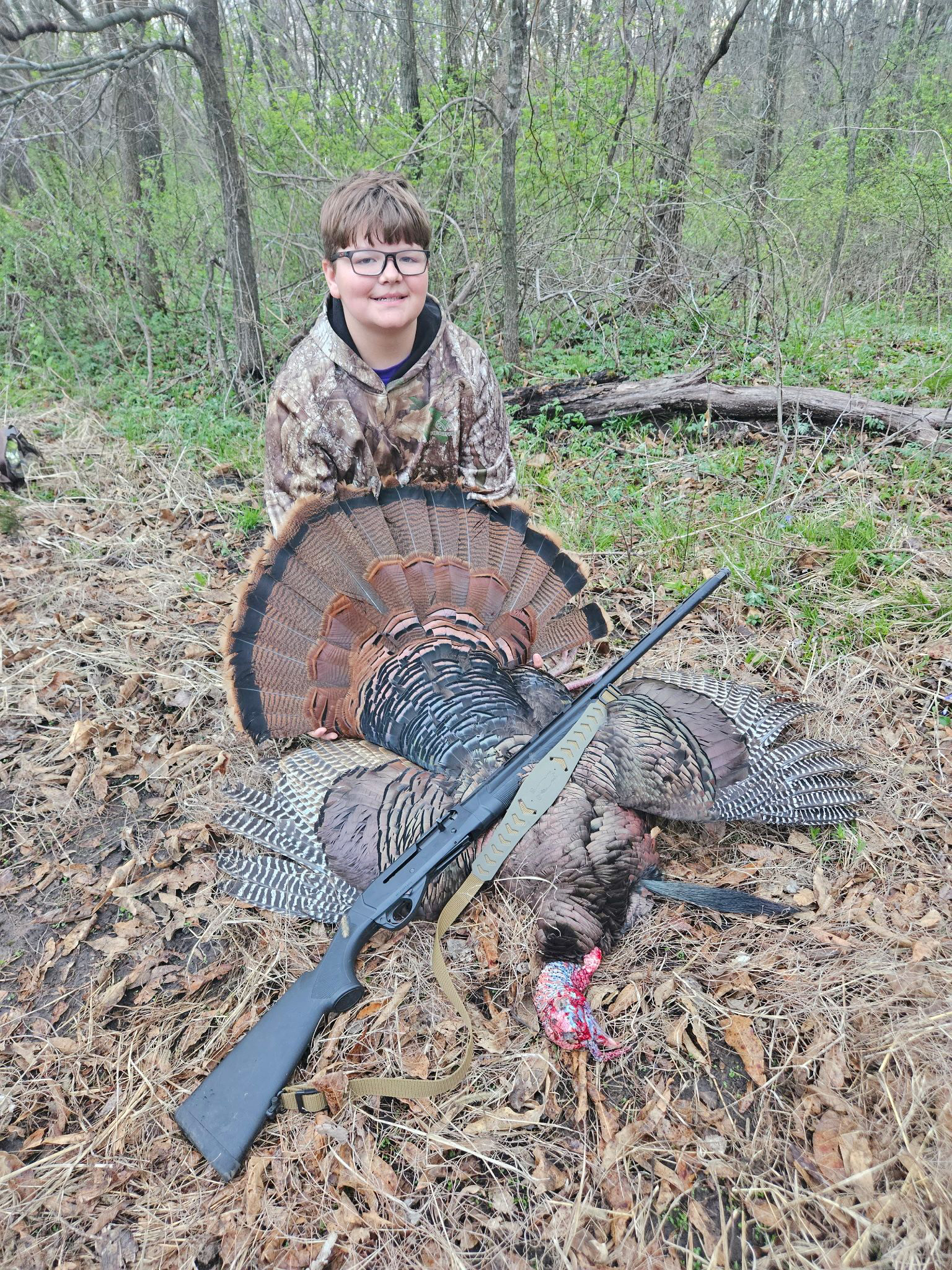 Beau Theis (age 12) got a big 25.5 pound gobbler with 10” beard and 1 1/4” spurs.