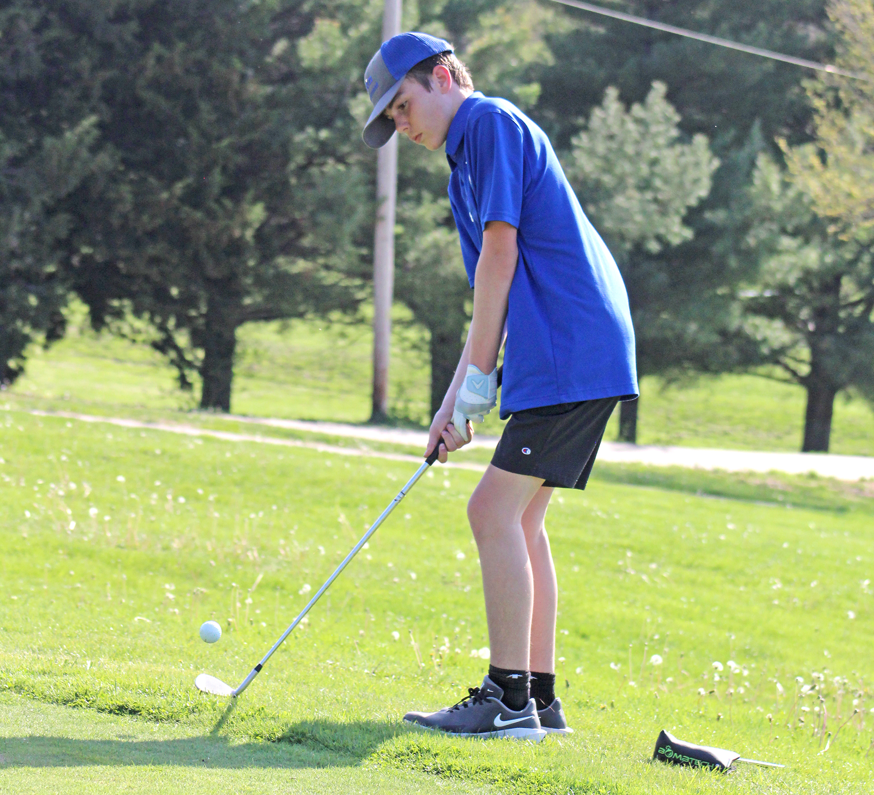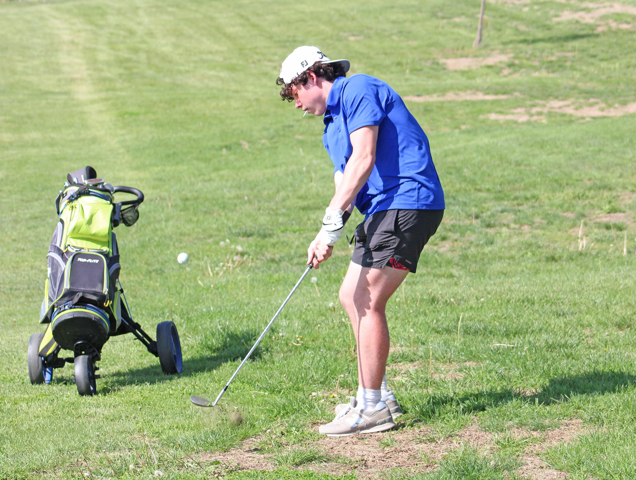 Bentley Teten chips his ball closer to the green.