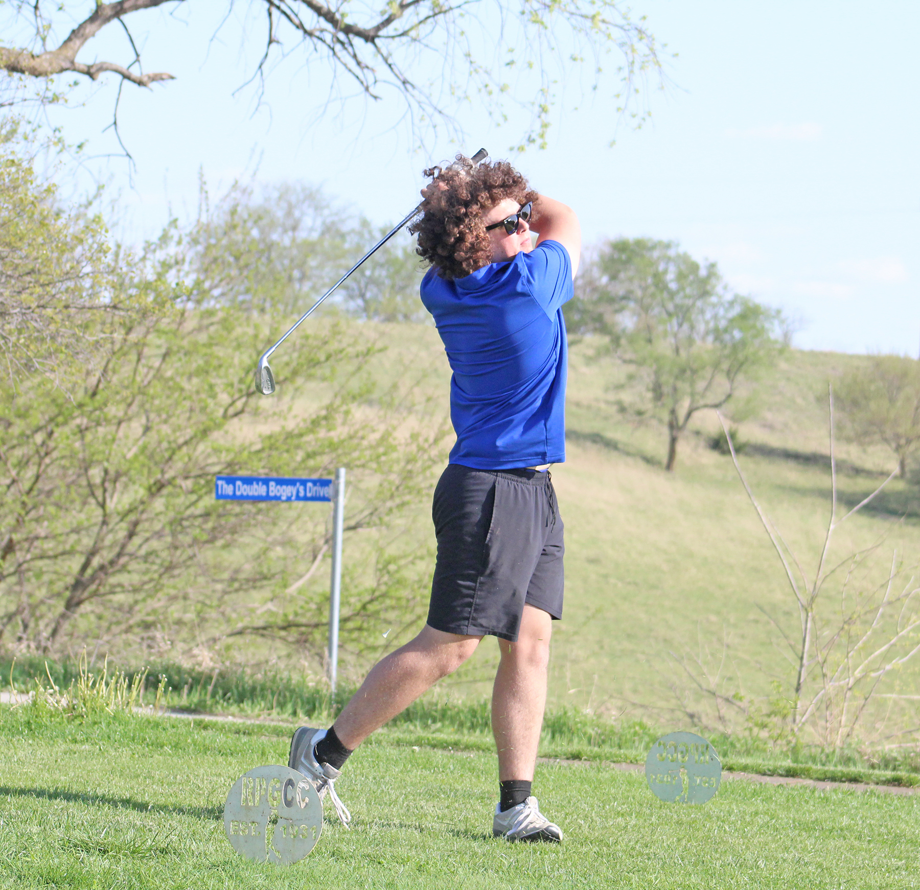 Jaysen Hudson watches to see where his ball ends up while competing April 21. He shot a 53 for the JV Blue Jays.