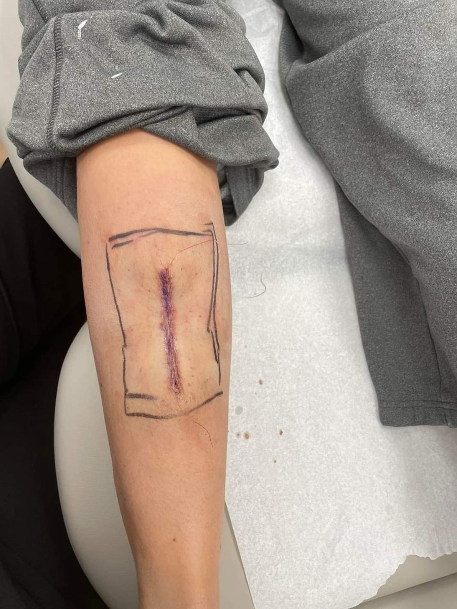 Kayti Hayes underwent a two-hour surgery to remove the melanoma which left a 4” scar with 37 stitches inside and 20 outside.