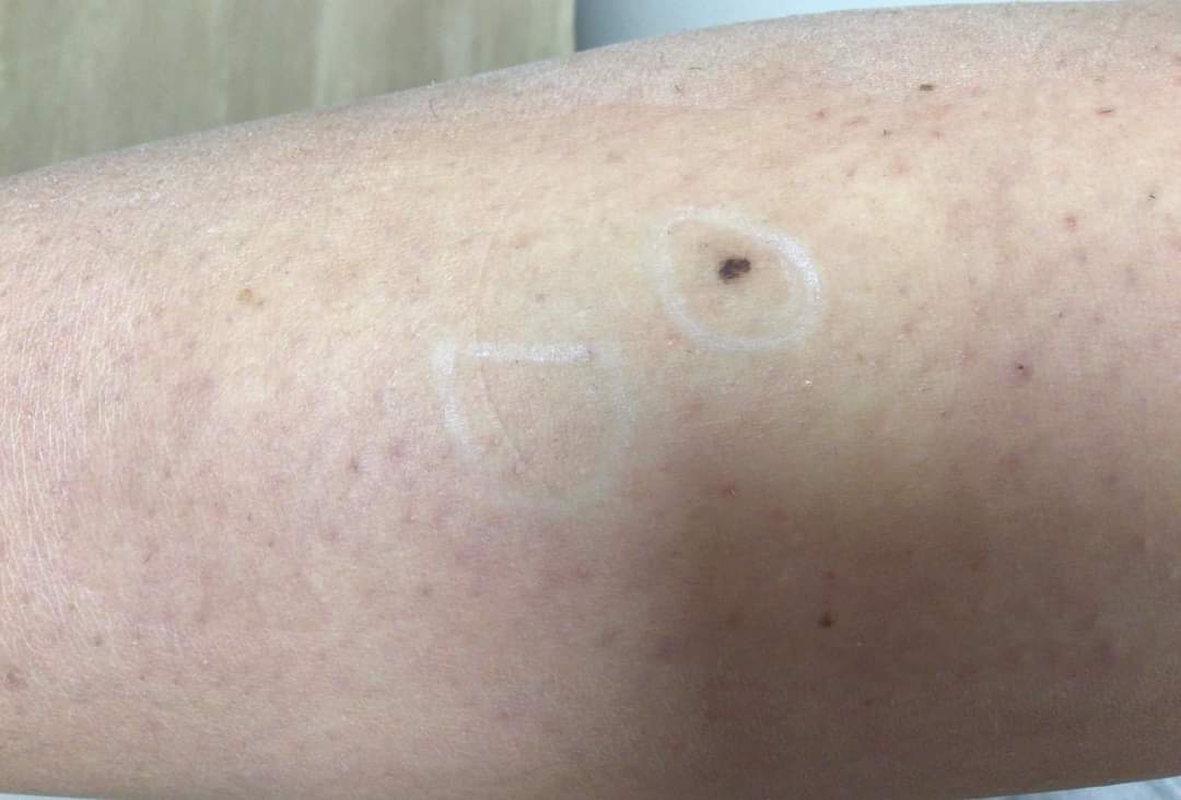 The biopsy on a freckle on Kayti Hayes’ calf showed it was Invasive Melanoma Stage 1.
