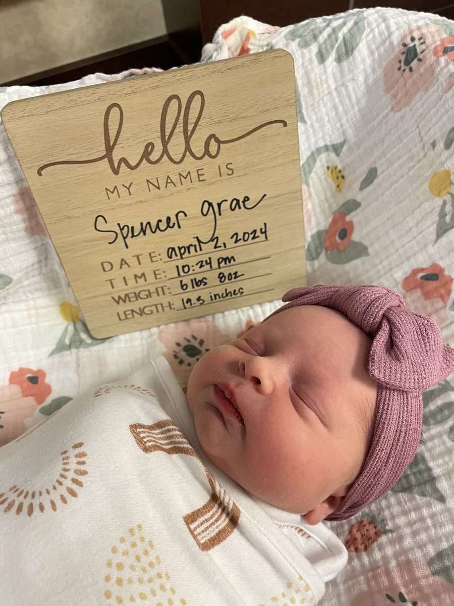 Kyle and Karrington Oakley, Lincoln, Nebraska, are proud to announce the arrival of their beautiful daughter, Spencer Grae Oakley. Spencer was born on April 2, 2024, at 10:24 p.m. weighing 6 pounds and 8 ounces and was 19 inches long.