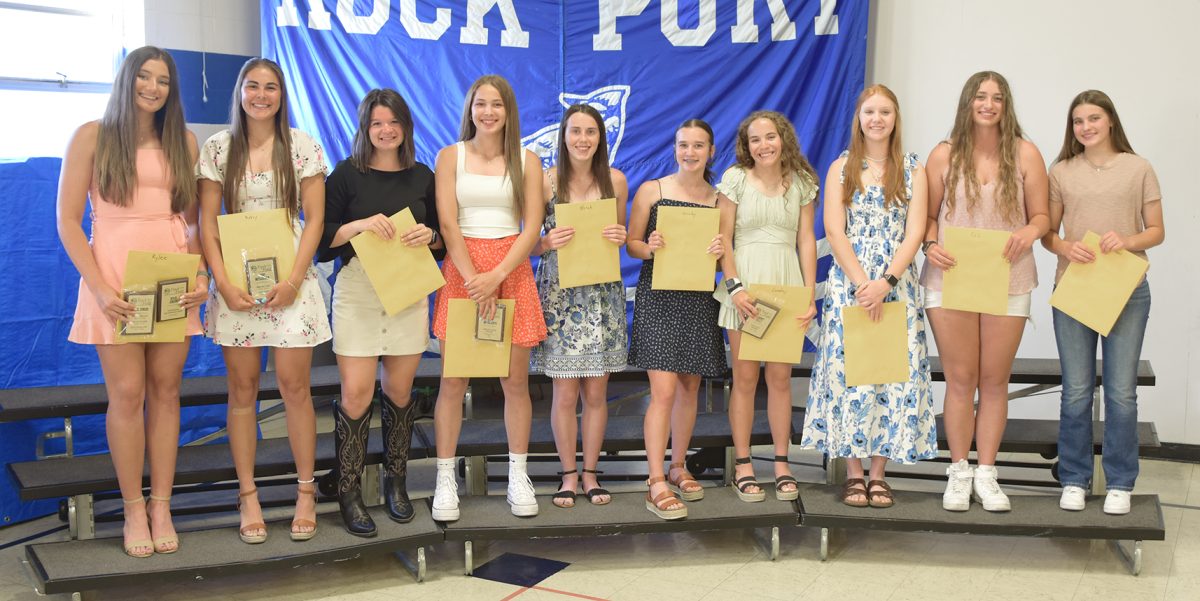 The Rock Port High School Spring Athletic Banquet was held May 28, 2024. The Rock Port girls’ track team, from left to right, included Rylee Jenkins, Avery Meyerkorth, Jayme McEnaney, Ella Meyerkorth, Norah Watkins, Jacoby Driskell, Landrey Kelly, Lilly Pankau, Cali Driskell, and Tatum Vogler. Brylea Shrader and Claire Miller are not pictured.
