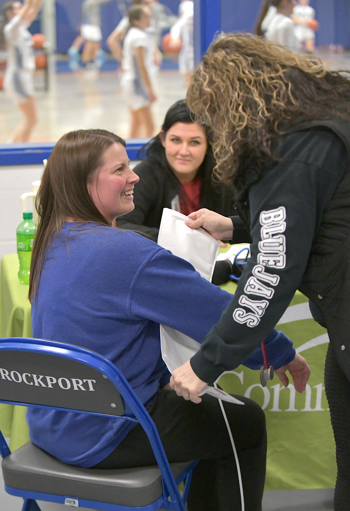Terri Jackson checks Jennifer Vogler’s blood pressure at the Rock Port basketball games Tuesday, February 4. Jennifer was one of 77 people who had their blood pressure checked that night. Community Hospital-Fairfax is on the road during Heart Health Month with the goal of taking 1,000 blood pressures. CH-F has also checked blood pressures in Fairfax, Burlington Junction, and Mound City with a total of 476 as of Monday, February 10. Their remaining schedule includes South Holt High School on February 13, Community Hospital-Fairfax on February 14, Tarkio Nutrition Center on February 18, Mound City Nutrition Center on February 20, and Rock Port Senior Center on February 26.
