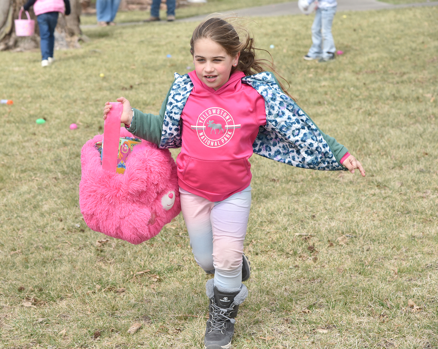 Brinley Guyer races off to fill her Care Bears Easter egg basket. Claire Oswald, top, and Ella Smith, above, hunted for eggs and Easter goodies at the Fairfax Easter Continue Reading »