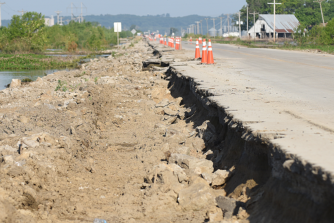 Damage is revealed as the flood waters start to recede off of US Hwy. 136. Currently there are trucks going in and out, but they are not doing any repairs Continue Reading »
