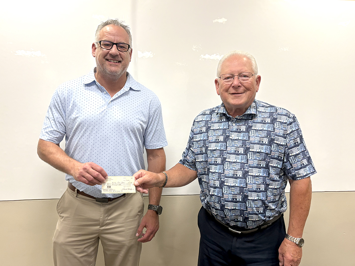 Fairfax R-3 School Superintendent Dr. Jason McDowell, left, accepts a check for $700 from Bob Alldredge, treasurer of Fairfax Kiwanis Club, right. The donation is for equipment needs for Continue Reading »